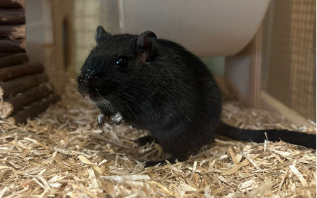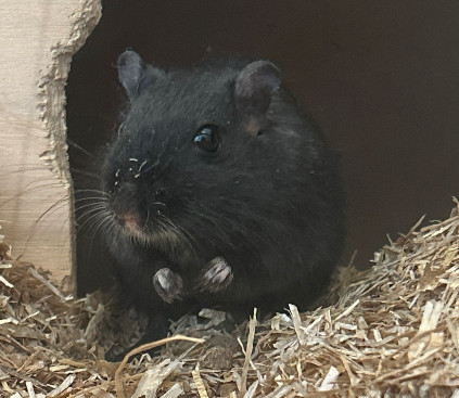 Apollo wurde im Mai 2025 im Alter von 8 Wochen in meiner Auffangstation abgegeben. Er stammt aus einem Unfallwurf, seine Eltern wurden in einer Tierhandlung gekauft, in der die Geschlechter der Mäuse falsch bestimmt wurden. Apollo wurde als Jungtier bei mir vergesellschaftet und ist dann gemeinsam mit Partner ausgezogen. Nachdem sein Partner verstorben ist, wurde er wieder erfolgreich vergesellschaftet (die VG war lt. der Besitzerin sehr unkompliziert). Leider ist sein neuer Partner kurz nach der VG verstorben und Apollo ist wieder zu mir zurückgekommen.