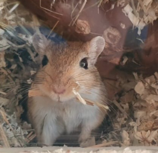 Vorstellung: "Hallo, ich bin Jimmy!" Ich bin eine kleine, richtig süße Maus mit viel Energie und Charakter - und ich wünsche mir ein neues Zuhause mit einem lieben Mäusefreund. Mein bester Kumpel Pepone ist leider nicht mehr da und nun suche ich wieder Gesellschaft und Menschen, die sich gut um mich kümmern. Vor 2 Monaten wurde mir ein Duftdrüsentumor entfernt. Ich bin neugierig, aktiv und immer unterwegs - bei mir ist immer was los! Ich liebe Klopapierrollen zum Knabbern, auch mit einem Reispop oder Stückchen Salat kannst du mein Herz höher schlagen lassen. Ich fresse dir auch aus der Hand und lasse mich während dem Fressen auch streicheln. Lg dein Jimmy"