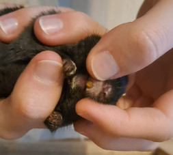 Folgendes wird bei der Kontrolle der Augen/Nase geprüft: Sind beide Augen offen? Sind Augen und Nase sauber und trocken? Bei rotem Sekret an Nase/Augen handelt es sich meistens nicht um Blut, sondern um Sekret aus der sogenannten "Harderschen-Drüse". Manchmal kann es vorkommen, dass die Mäuse dieses Sekret nicht sofort wegputzen. Kommt das häufiger vor, sollte ein Tierarzt aufgesucht werden.