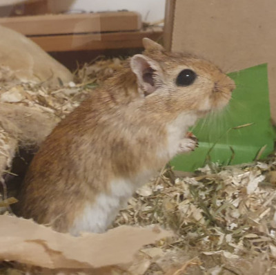 Vorstellung: "Hallo, ich bin Jimmy!" Ich bin eine kleine, richtig süße Maus mit viel Energie und Charakter - und ich wünsche mir ein neues Zuhause mit einem lieben Mäusefreund. Mein bester Kumpel Pepone ist leider nicht mehr da und nun suche ich wieder Gesellschaft und Menschen, die sich gut um mich kümmern. Vor 2 Monaten wurde mir ein Duftdrüsentumor entfernt. Ich bin neugierig, aktiv und immer unterwegs - bei mir ist immer was los! Ich liebe Klopapierrollen zum Knabbern, auch mit einem Reispop oder Stückchen Salat kannst du mein Herz höher schlagen lassen. Ich fresse dir auch aus der Hand und lasse mich während dem Fressen auch streicheln. Lg dein Jimmy"